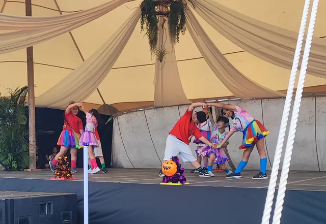 ① 大自然の中、キッズダンサーが元気いっぱいのステージ